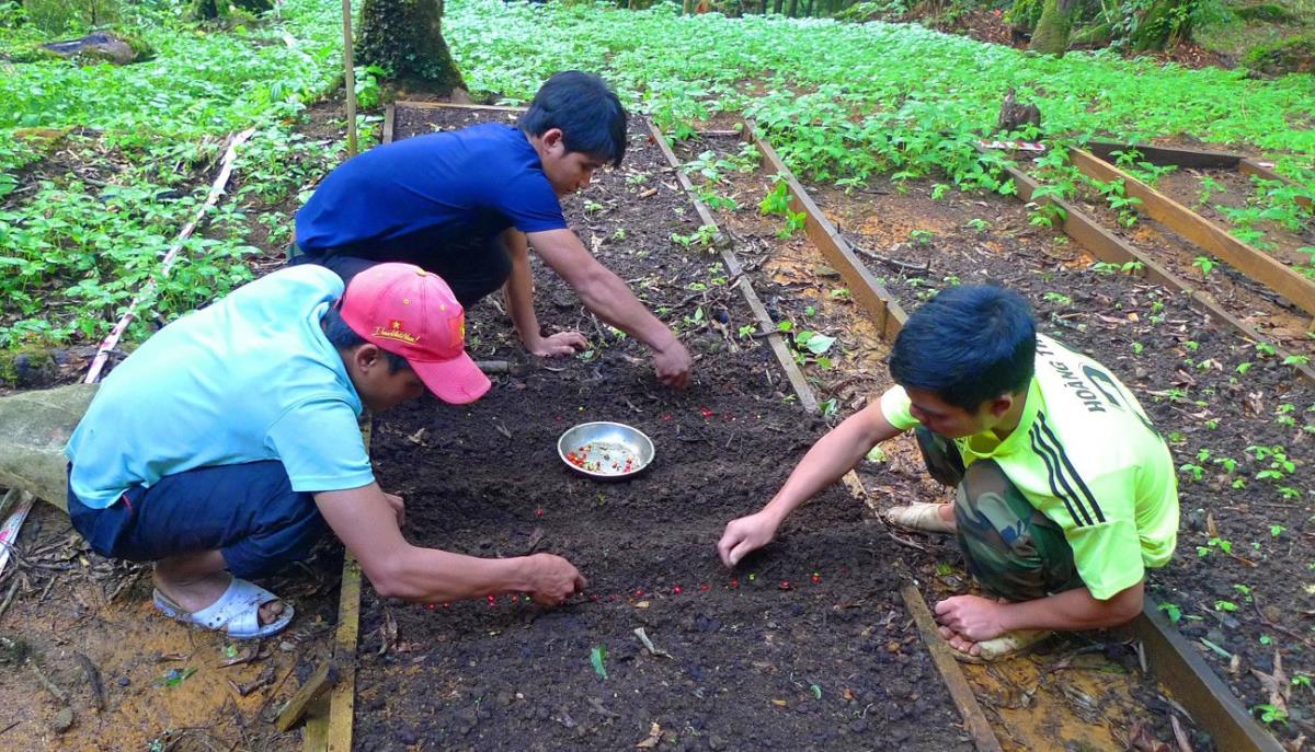 Người dân ươm mầm cây sâm Ngọc Linh.