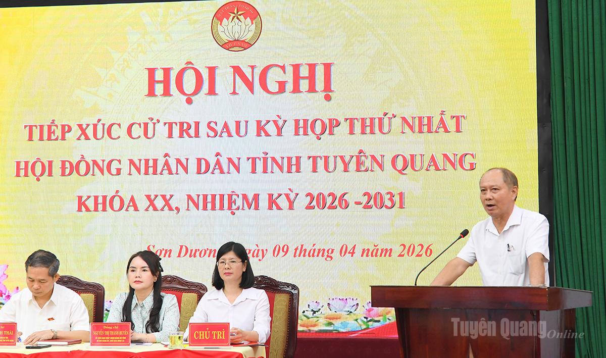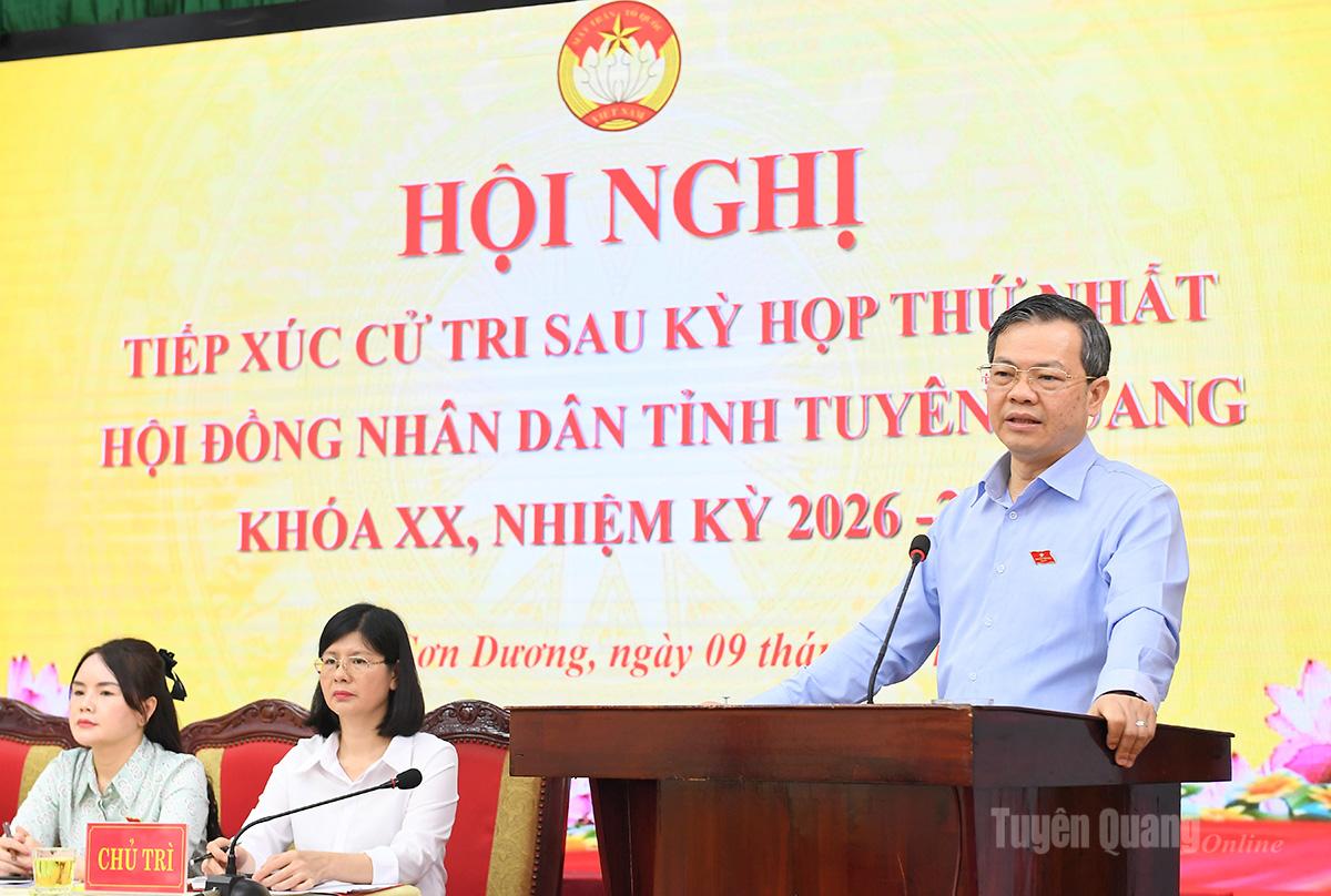 Phát biểu tại hội nghị, đồng chí Chủ tịch HĐND tỉnh Nguyễn Văn Sơn đã cảm ơn sự quan tâm, ủng hộ và sự tín nhiệm của cử tri khi đã tích cực tham gia cuộc bầu cử đại biểu Quốc hội khóa XVI và đại biểu HĐND các cấp nhiệm kỳ 2026-2031 giúp cuộc bầu cử trên địa bàn tỉnh được tổ chức thành công rất tốt đẹp, bảo đảm dân chủ, đúng pháp luật, an toàn, tiết kiệm và đúng tiến độ. Tỷ lệ cử tri tham gia bỏ phiếu đạt 99,99%, thuộc nhóm 4 tỉnh, thành phố có tỷ lệ cử tri đi bầu cao nhất cả nước, thể hiện rõ tinh thần trách nhiệm, sự đồng thuận và niềm tin của cử tri, Nhân dân đối với Đảng, Nhà nước và chính quyền các cấp. Thành công của cuộc bầu cử đã khẳng định mạnh mẽ của khối đại đoàn kết toàn dân, niềm tin của cử tri đối với sự lãnh đạo của các cấp ủy Đảng, sự chỉ đạo, điều hành của chính quyền các cấp. Đối với hoạt động của HĐND tỉnh và đại biểu HĐND tỉnh khóa mới, đồng chí nhấn mạnh, mỗi đại biểu đều phải nỗ lực đổi mới, hành động hiệu quả, thực sự gần dân, vì dân; mỗi quyết định của HĐND tỉnh phải hướng tới mục tiêu cao nhất là phục sự Tổ quốc, phục vụ Nhân dân, kiến tạo chính quyền địa phương hướng đến sự phát triển nhanh và bền vững của quê hương Tuyên Quang.