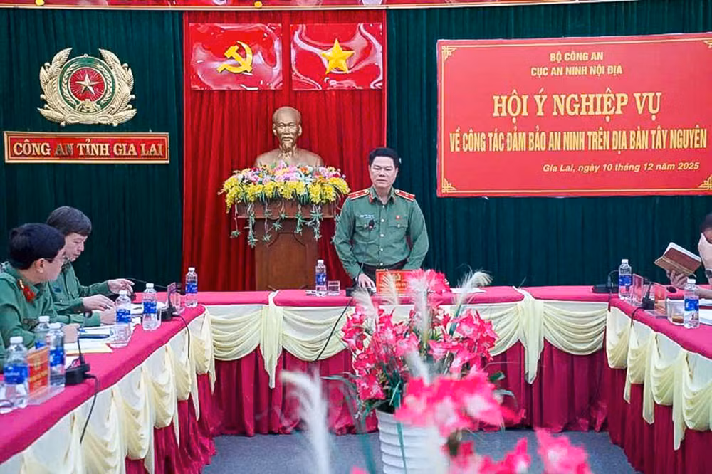 Thiếu tướng Nguyễn Hữu Mạnh, Cục trưởng Cục An ninh nội địa chỉ đạo công tác bảo đảm an ninh Tây Nguyên. (Ảnh: Cục An ninh nội địa)