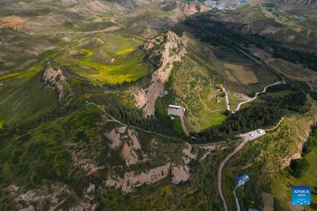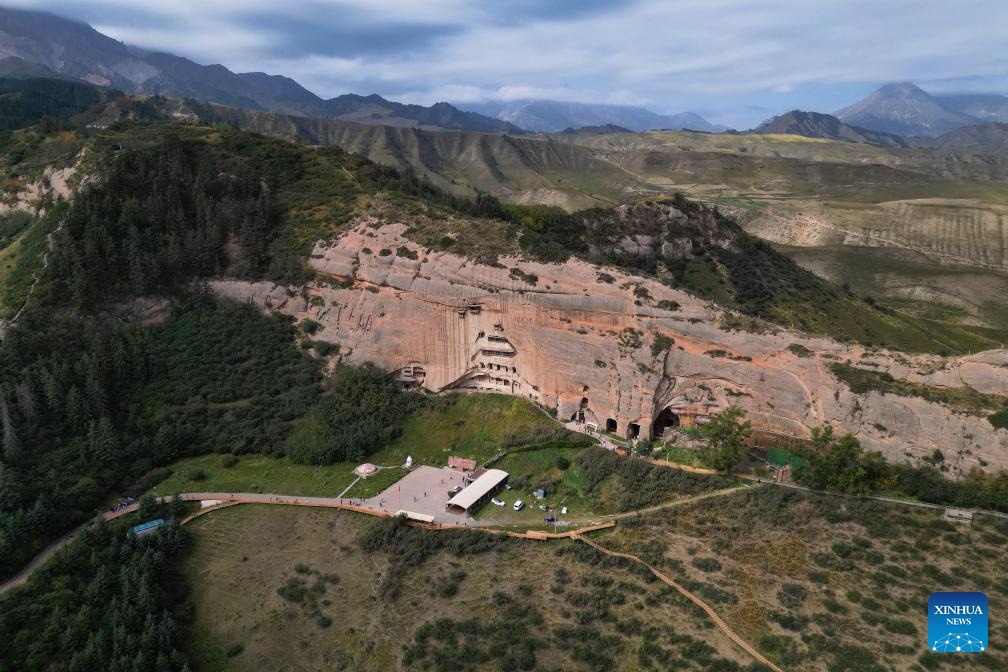 Tại những cánh rừng bao quanh đền Mati (tỉnh Cam Túc, Trung Quốc), thu về muộn hơn. Một số loại cây đã bắt đầu chuyển màu. Các hang động của đền Mati được xây dựng dọc theo Con đường tơ lụa cách đây khoảng 1.600 năm, nơi đây có khoảng 500 tác phẩm điêu khắc nằm rải rác trong hơn 70 hang động. Ảnh: Xinhua.