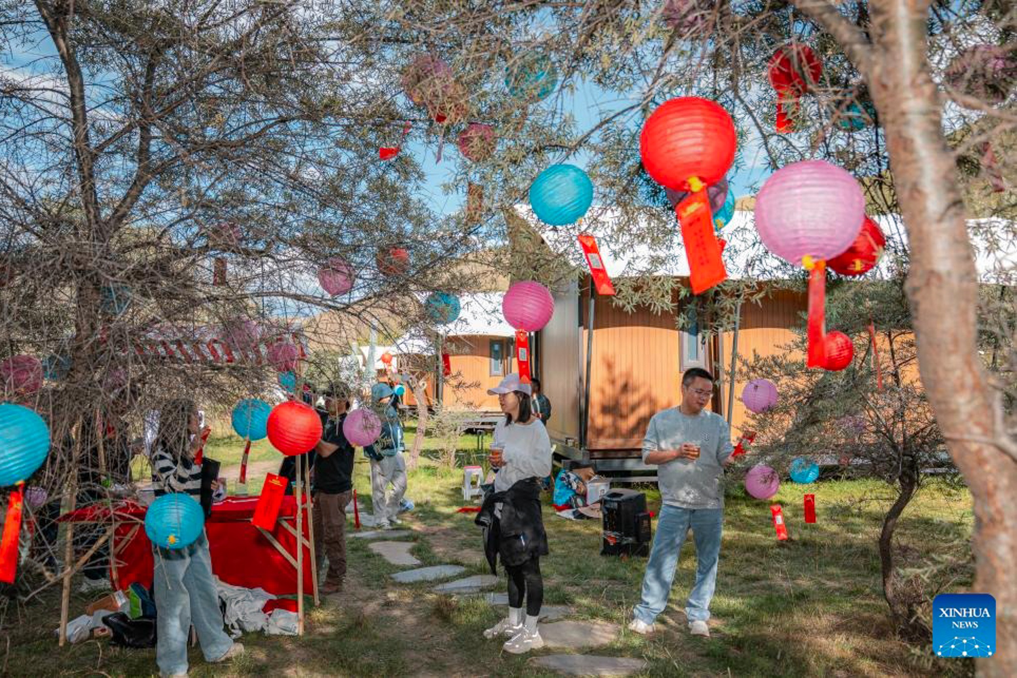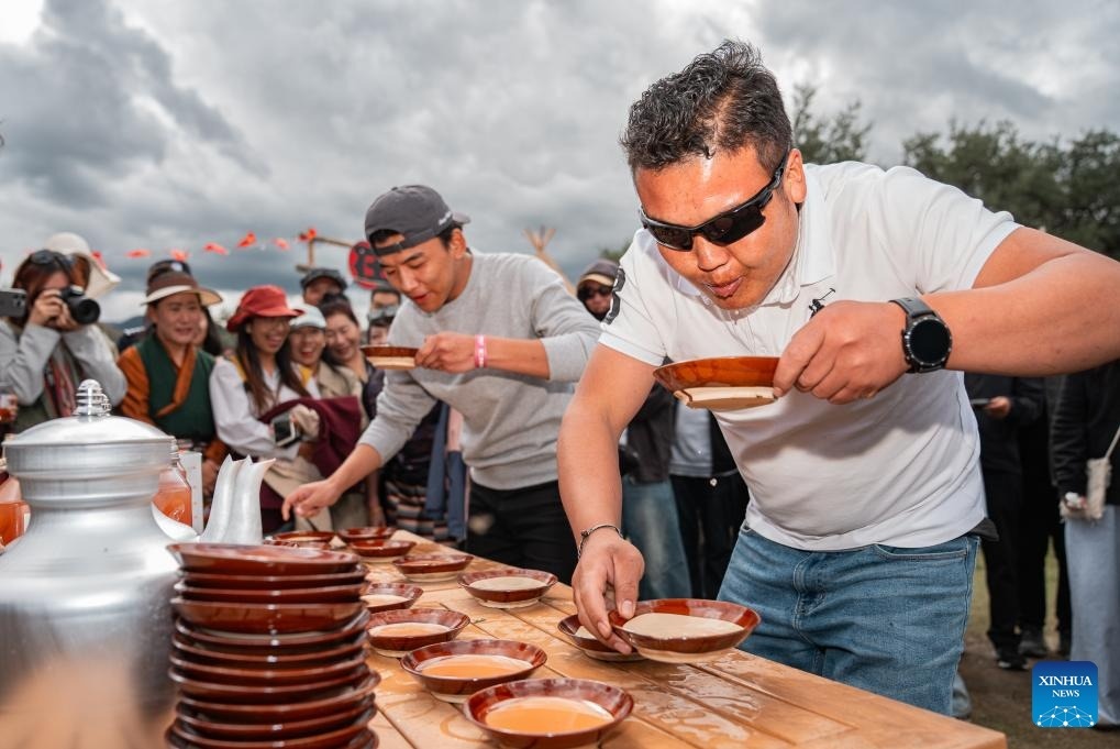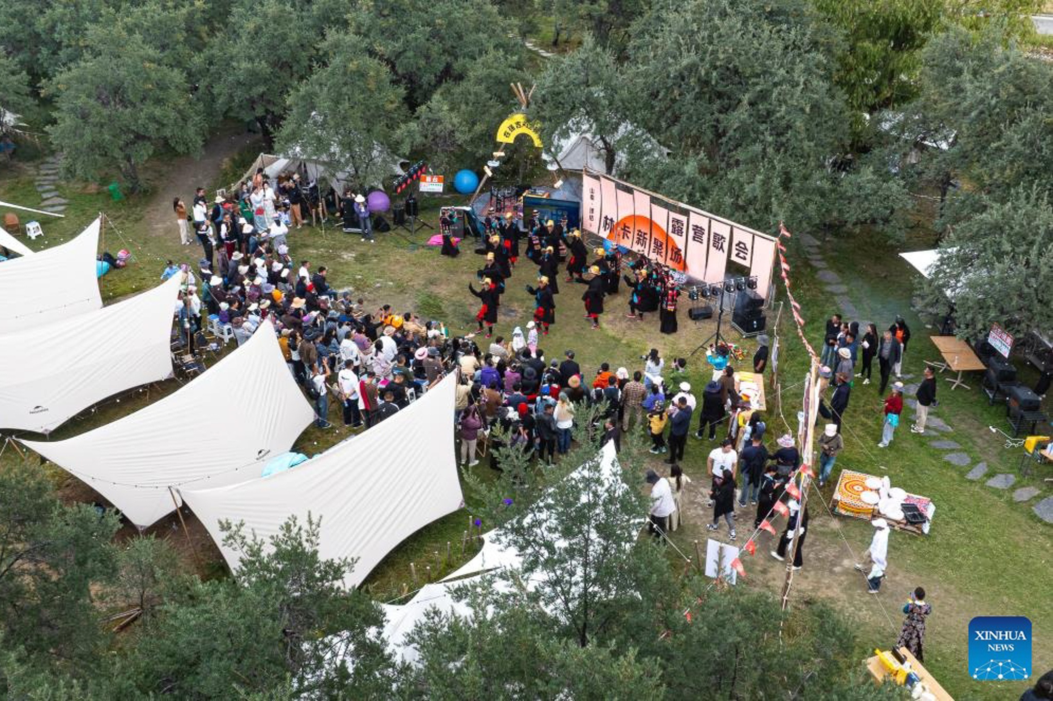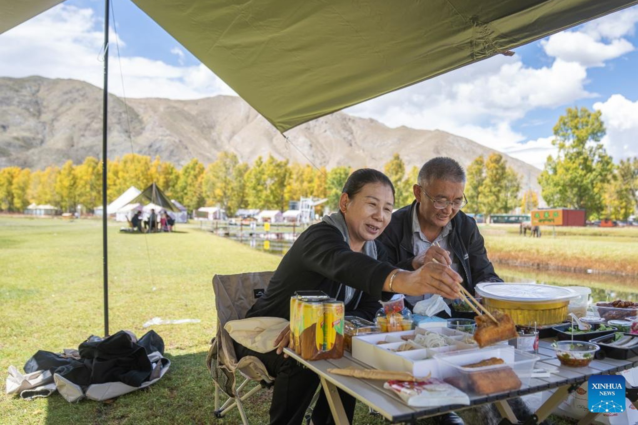 Mùa thu cũng là thời điểm diễn ra lễ hội "Lingka" của người Tây Tạng. Người dân địa phương và du khách thường tìm đến khu cắm trại "Lingka" ở thành phố Lhasa, Tây Tạng để cắm trại, dã ngoại, tham gia cuộc thi uống rượu lúa mạch, thưởng thức các tiết mục văn nghệ... Ảnh: Xinhua.