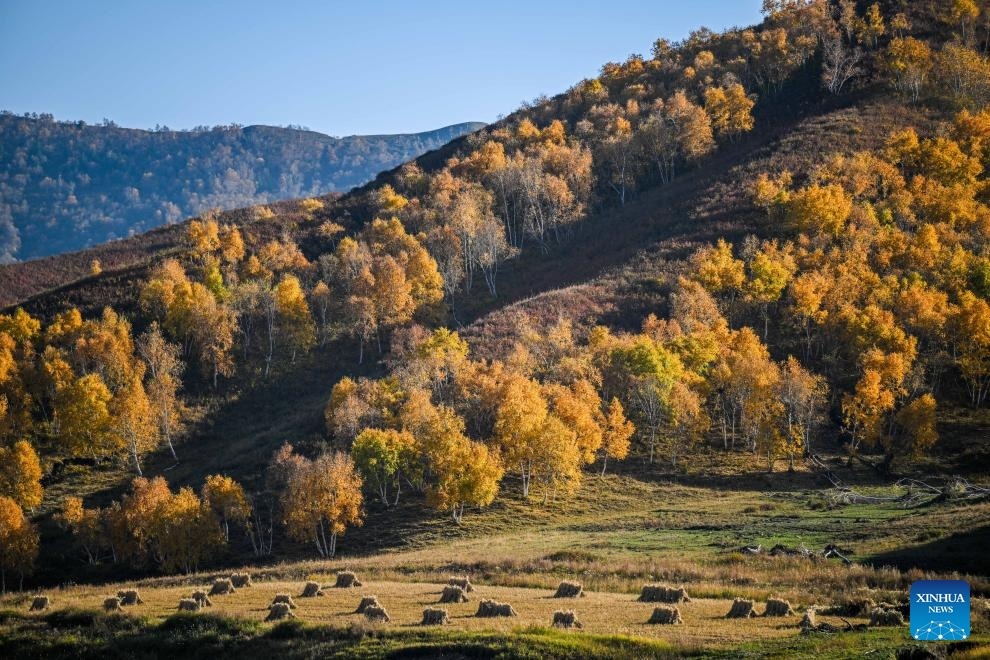 Đến Nội Mông vào mùa thu, du khách có thể lái xe xuyên qua những cánh rừng, cưỡi ngựa vượt suối hoặc trekking giữa thiên nhiên để chiêm ngưỡng khung cảnh lá vàng, lá đỏ rực rỡ. Ảnh: Xinhua.
