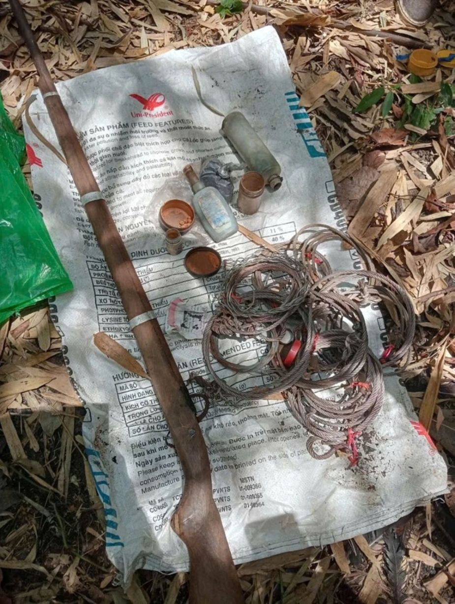 Bẫy thú và súng tự chế được phát hiện trong lâm phần VQG Chư Yang Sin. Ảnh: T.L