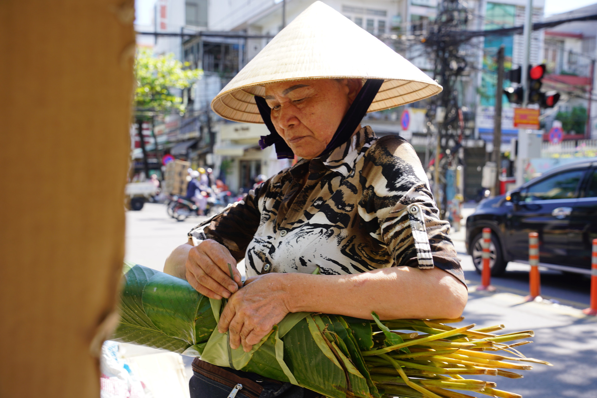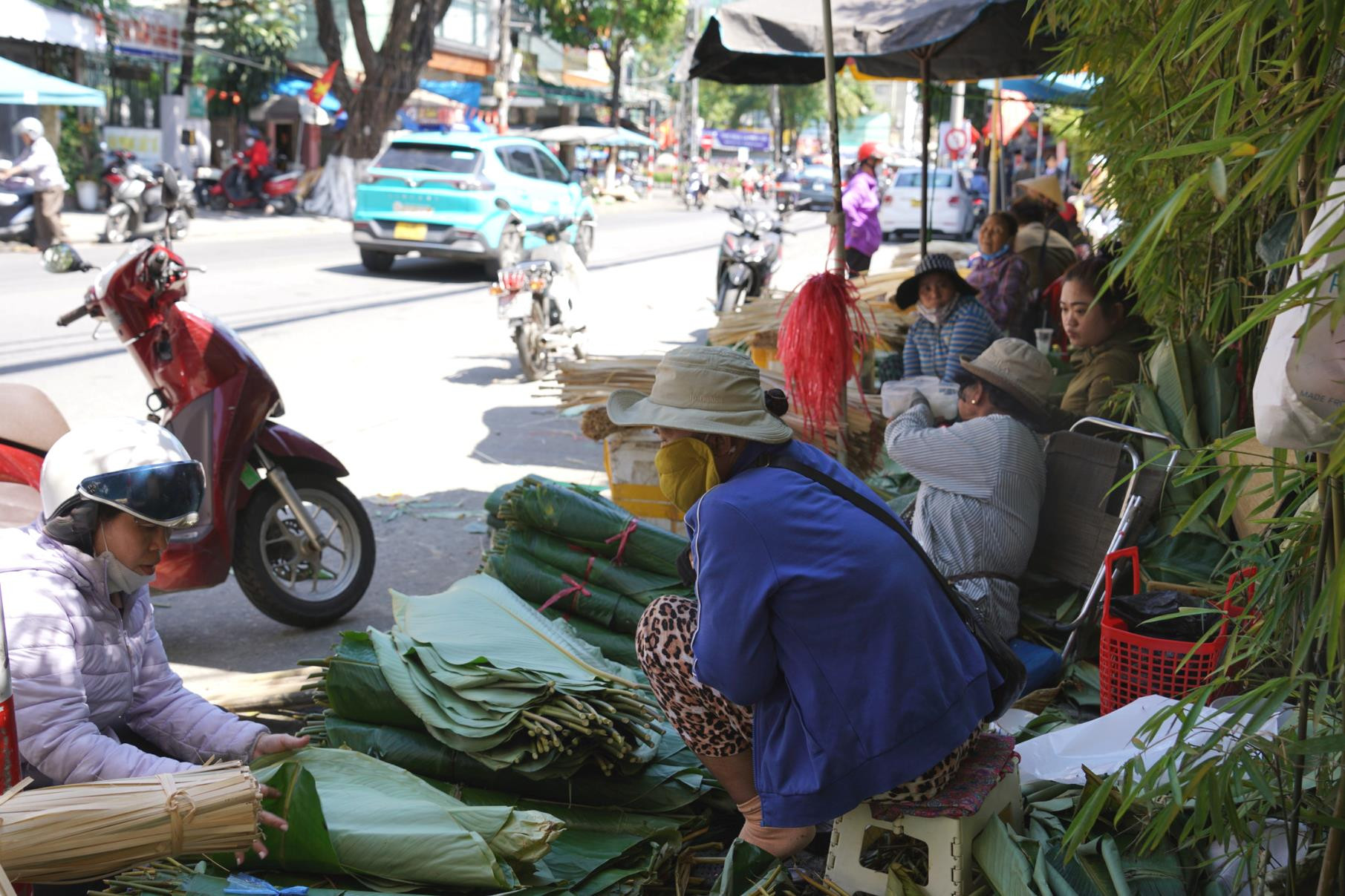 Những câu chuyện quen thuộc ấy lặp lại qua nhiều mùa xuân, mở đầu cho nhịp rộn ràng của phiên “chợ lá” ở góc nhỏ gần chợ Tam Giác (phường Thanh Khê).