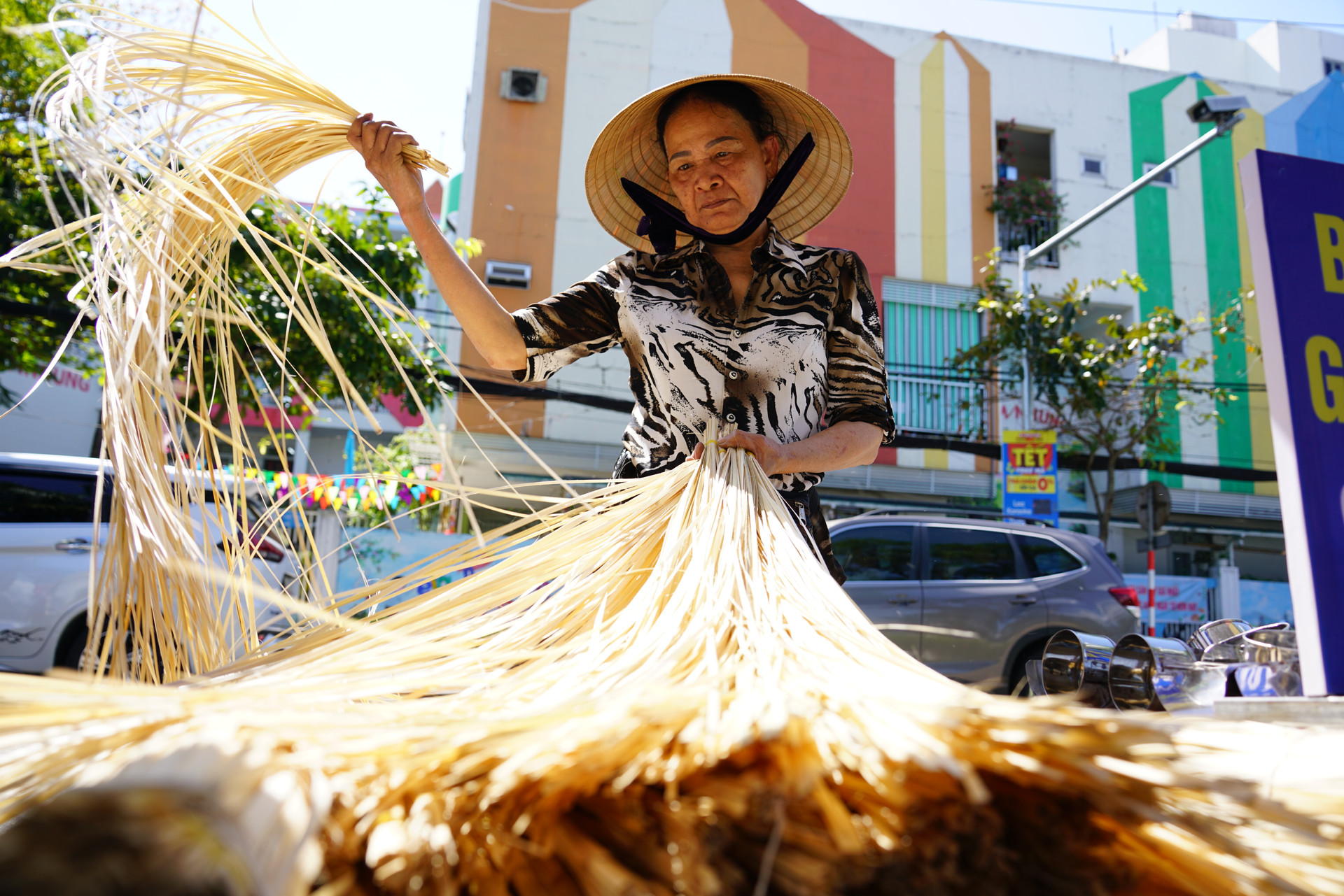 Lạt chuyển từ Hà Nội vào Đà Nẵng, được ưa chuộng nhờ độ dẻo và khó đứt khi gói bánh. Ảnh: TRÂM ANH