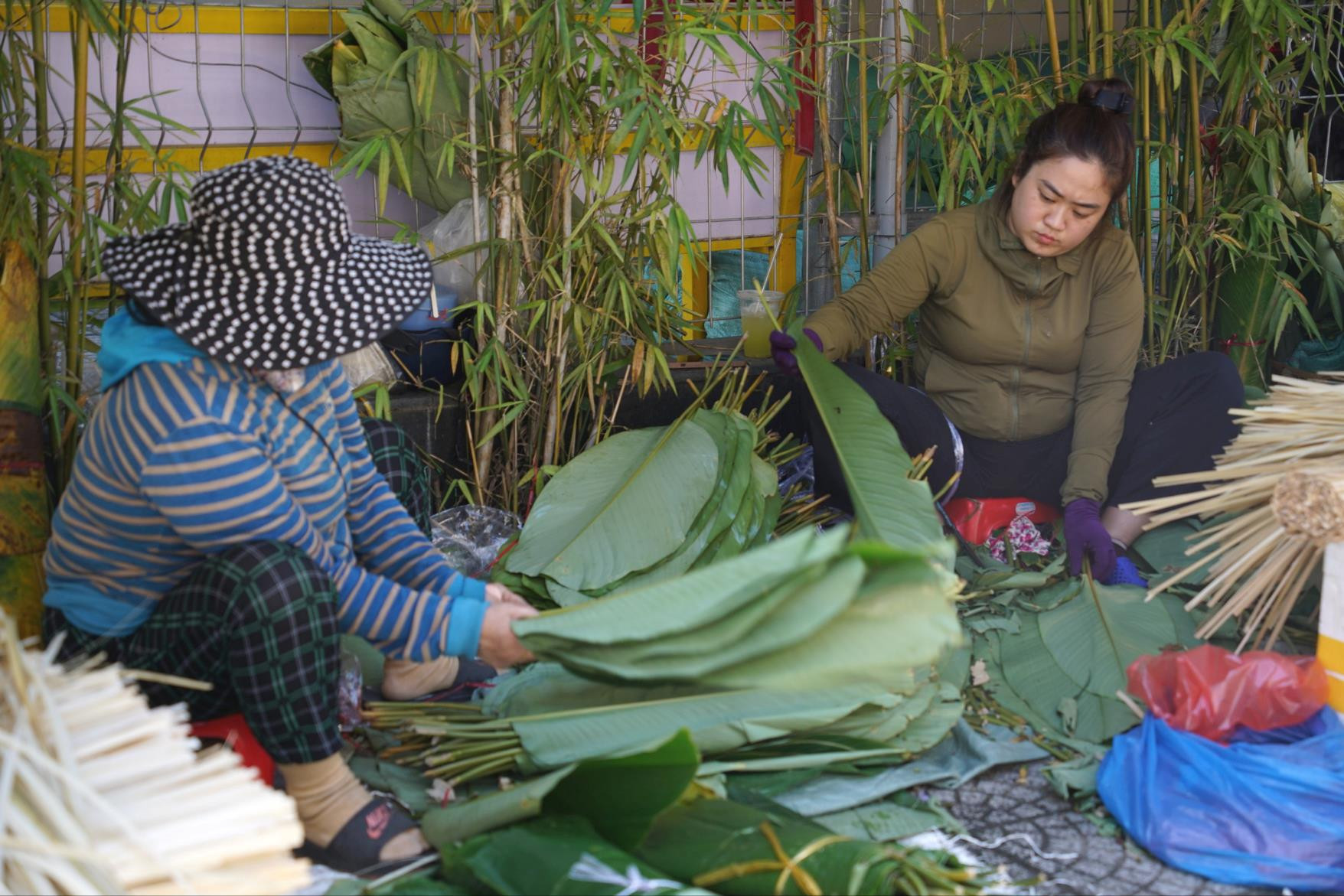 Giữa thời buổi bánh chưng đóng gói sẵn bày bán khắp nơi, nhiều gia đình vẫn chọn tự vo nếp, ướp đậu, xếp thịt và thức đêm canh nồi bánh đỏ lửa. Phiên “chợ lá” vì thế không đơn thuần là nơi trao đổi hàng hóa, mà là nơi níu giữ nhịp Tết truyền thống từ căn bếp mỗi gia đình.