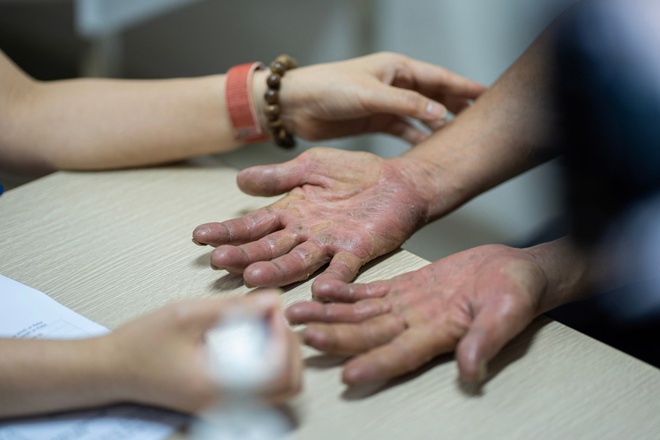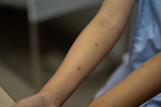 Một trong những bệnh phổ biến nhất là nấm da, đặc biệt ở vùng chân hoặc những người tiếp xúc với vật nuôi như mèo. Theo bác sĩ, bệnh có thể khởi phát chỉ với vài nốt nhỏ nhưng lan rất nhanh khi gặp điều kiện nóng ẩm. Thói quen gãi khi ngứa càng làm tổn thương lan rộng.