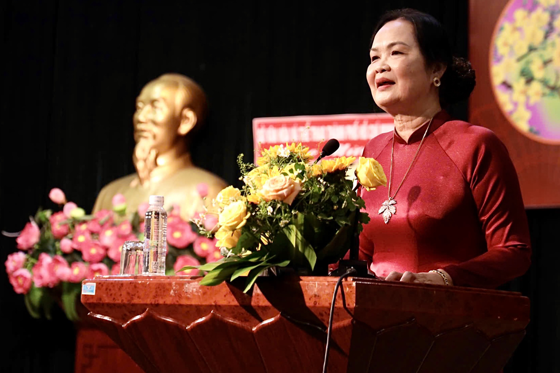 “Sống, làm việc và sáng tạo trong môi trường nhiều thuận lợi và cũng không ít thử thách, đòi hỏi mỗi chúng ta - những người cầm bút phải nâng mình lên rất nhiều vì xem xét kỹ ta sẽ thấy văn học là nguồn tư liệu gốc của nhiều thể loại nghệ thuật”, bà Ngân phát biểu.