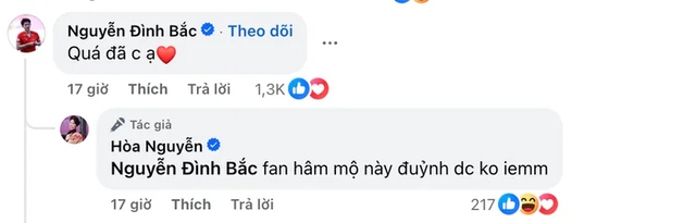 Cụ thể, sau khi Hòa Minzy chia sẻ cảm xúc xúc động trước tinh thần thi đấu kiên cường của các cầu thủ U23 Việt Nam, Đình Bắc đã để lại bình luận trêu chọc đầy hài hước: "Chị Hòa ơi chị khóc nhớ quay em xem với ạ". Cách xưng hô thân mật cùng giọng điệu dí dỏm khiến cộng đồng mạng thích thú.