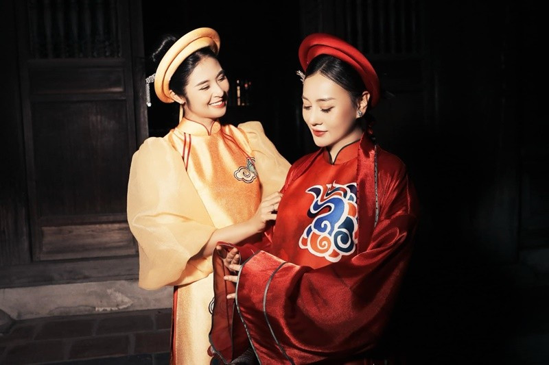 Khi Phương Oanh tổ chức lễ ăn hỏi với Shark Bình, Ngọc Hân thiết kế áo dài cho cô bạn thân.