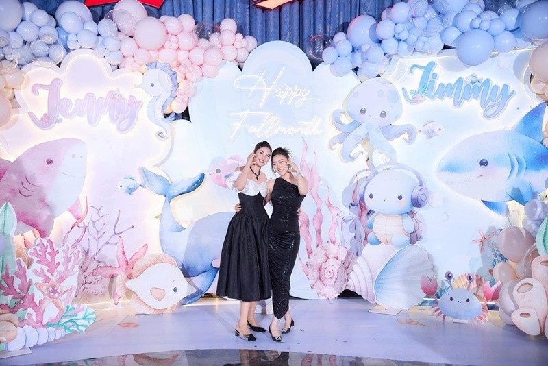 Ngọc Hân làm MC trong tiệc đầy tháng của hai con Phương Oanh.