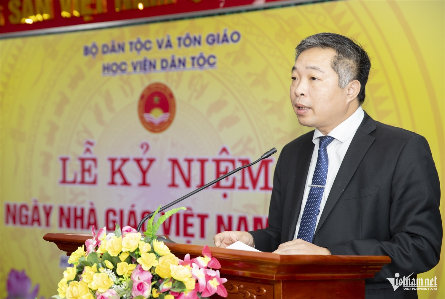 "Tôi tin tưởng rằng, mỗi thầy cô giáo Học viện Dân tộc sẽ tiếp tục là những người truyền lửa, thắp sáng ước mơ cho các em sinh viên, xứng đáng với niềm tin yêu của Đảng, Nhà nước và đồng bào các dân tộc", Thứ trưởng khẳng định.