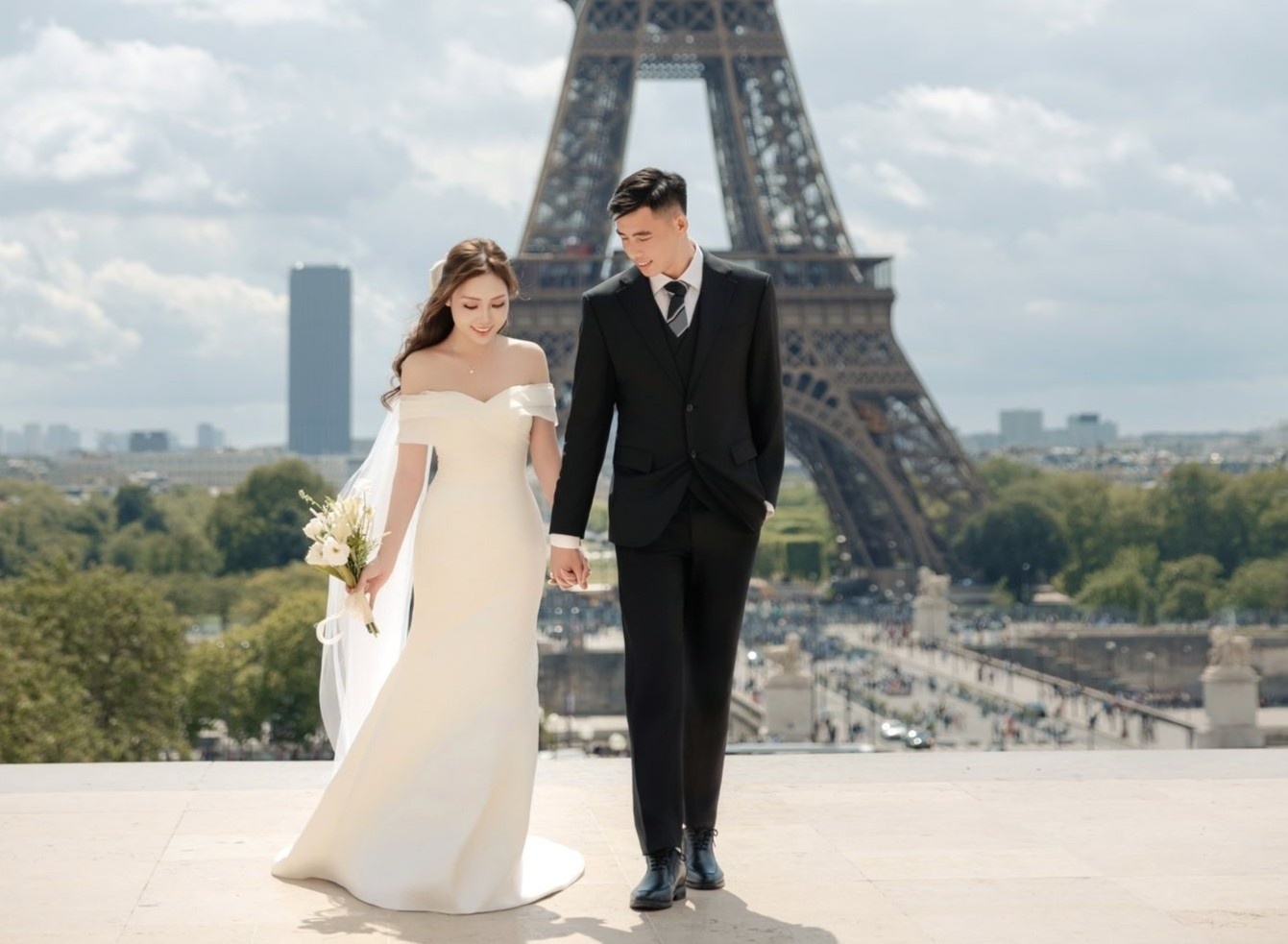Theo chia sẻ từ Dương Hà, Quan Văn Chuẩn ngỏ lời cầu hôn cô tại Paris (Pháp) vào khoảng cuối tháng 6, đầu tháng 7. Kinh đô ánh sáng cũng là địa danh yêu thích của nàng WAG. Cô nàng tốt nghiệp Học viện Ngân hàng, đã hoàn thành bậc học thạc sĩ, hiện là nhân viên ngân hàng. Ảnh: Quan Văn Chuẩn/Facebook.