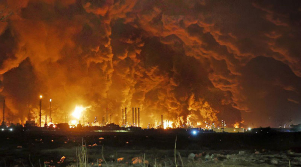 Khói lửa bốc cao như ngọn núi, có thể hủy diệt tất cả ở một cơ sở hóa dầu tại thủ đô Tehran, Iran. Ảnh: DW.