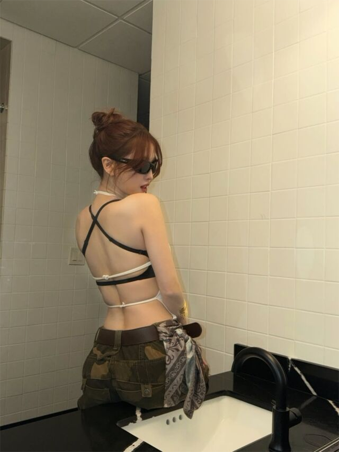 Điểm nhấn gây chú ý nhất chính là chiếc áo hai dây thiết kế hở lưng hoàn toàn mà Momo lựa chọn. Kiểu dáng backless táo bạo giúp cô khoe trọn phần lưng thon gọn, đường eo gọn gàng cùng vóc dáng không chút mỡ thừa. Dù diện trang phục tối giản, Momo vẫn khiến người xem không thể rời mắt nhờ tỷ lệ cơ thể cân đối và body săn chắc - thành quả của quá trình tập luyện nghiêm ngặt suốt nhiều năm hoạt động nghệ thuật.