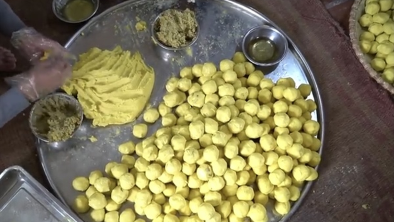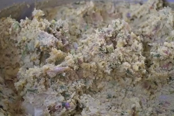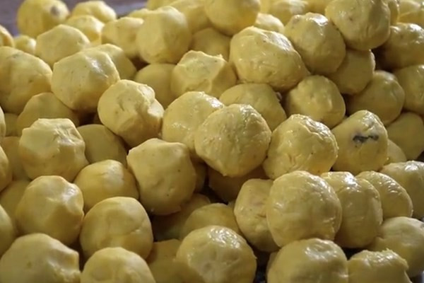 Hỗn hợp bột nghệ và gạo được nhào kỹ, hấp chín và nhồi lại để vỏ bánh đạt độ mềm, dẻo. Nhân bánh được nêm nếm vừa miệng, kết hợp với bột quế, ngũ vị hương hoặc chút nước mắm, tạo hương vị hài hòa, hấp dẫn. Công đoạn nặn bánh đòi hỏi sự khéo léo để vỏ bao trọn nhân mà không bị vỡ khi hấp. Ảnh dulich
