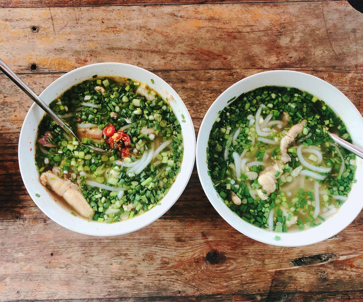 Thịt cá được ướp với hành tím, tỏi, tiêu và ớt cho thấm rồi xào sơ, trong khi phần lòng cá được xào riêng để giữ độ béo. Khi nước dùng sôi, sợi bột được thả vào, nấu đến khi trong và mềm thì múc ra tô, rắc thêm hành lá, tiêu bột, ớt tươi để dậy hương. Ảnh O Huyen