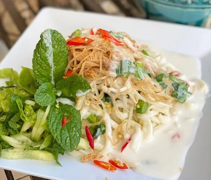Khi chan lên đĩa bánh, lớp nước cốt dừa béo thơm hòa cùng vị mặn ngọt của nước mắm pha đi kèm, tạo nên tổng thể đậm đà nhưng không gây ngấy. Với người miền Tây, độ “đúng vị” nằm ở chỗ nước cốt không quá lỏng, không quá ngọt, vừa đủ để thấm vào bánh mà vẫn giữ được hậu béo rõ rệt.