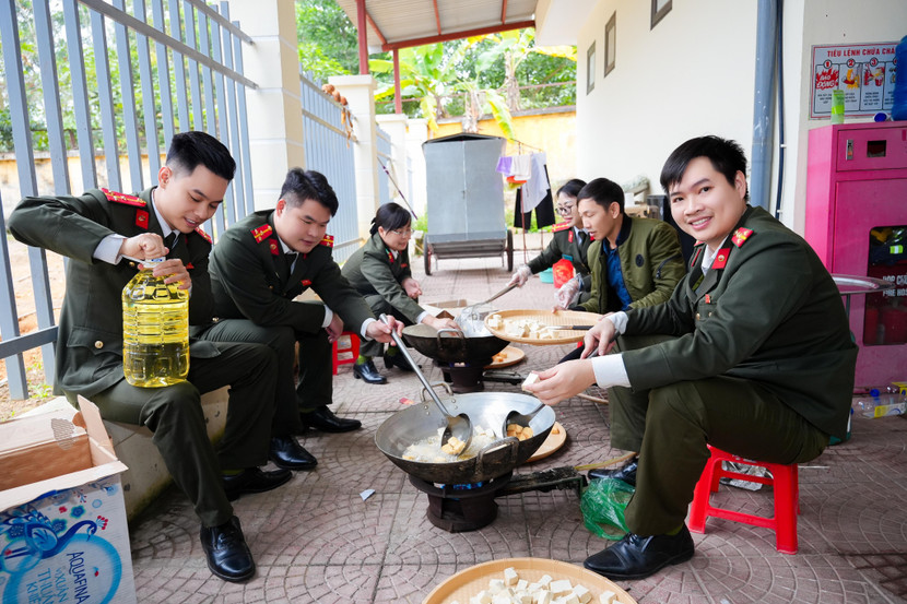 Cán bộ chiến sỹ Phòng Tham mưu vào bếp nấu mâm cơm Tết dành tặng các em nhỏ