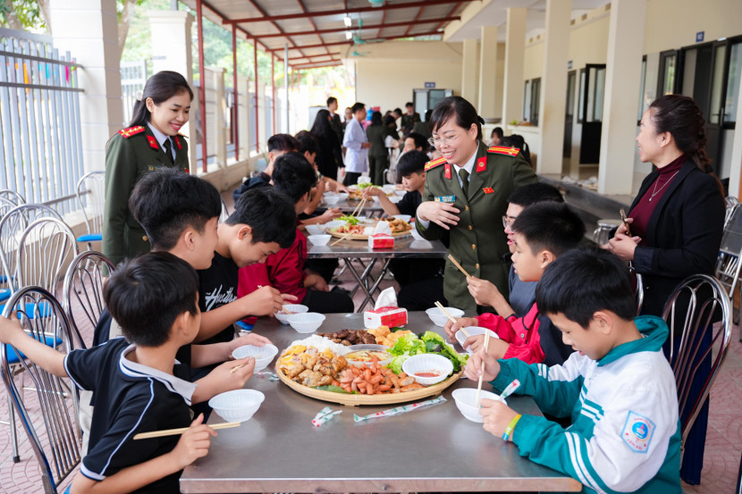 Và với các cháu nhỏ ngày hôm nay, Tết không chỉ có quà là đồ thiết yếu và thiệp lời chúc Tết tự tay các cô chú Công an ghi gửi tặng hay những lì xì đỏ mừng tuổi từ lợi nhuận bán sản phẩm thủ công (trang trí mẹt Tết) do các hội viên Hội Phụ nữ Cụm thi đua số 4 Công an thành phố Hà Nội tự tay làm trong Chương trình “Cán bộ chiến sỹ Công an Thủ đô - Vui Xuân đón Tết” tổ chức vào ngày 6-2-2026 mà các em nhỏ còn được các cô chú Phòng tham mưu Công an thành phố Hà Nội tự tay chuẩn bị nấu bữa ăn cơm Tết đầy đặc biệt…