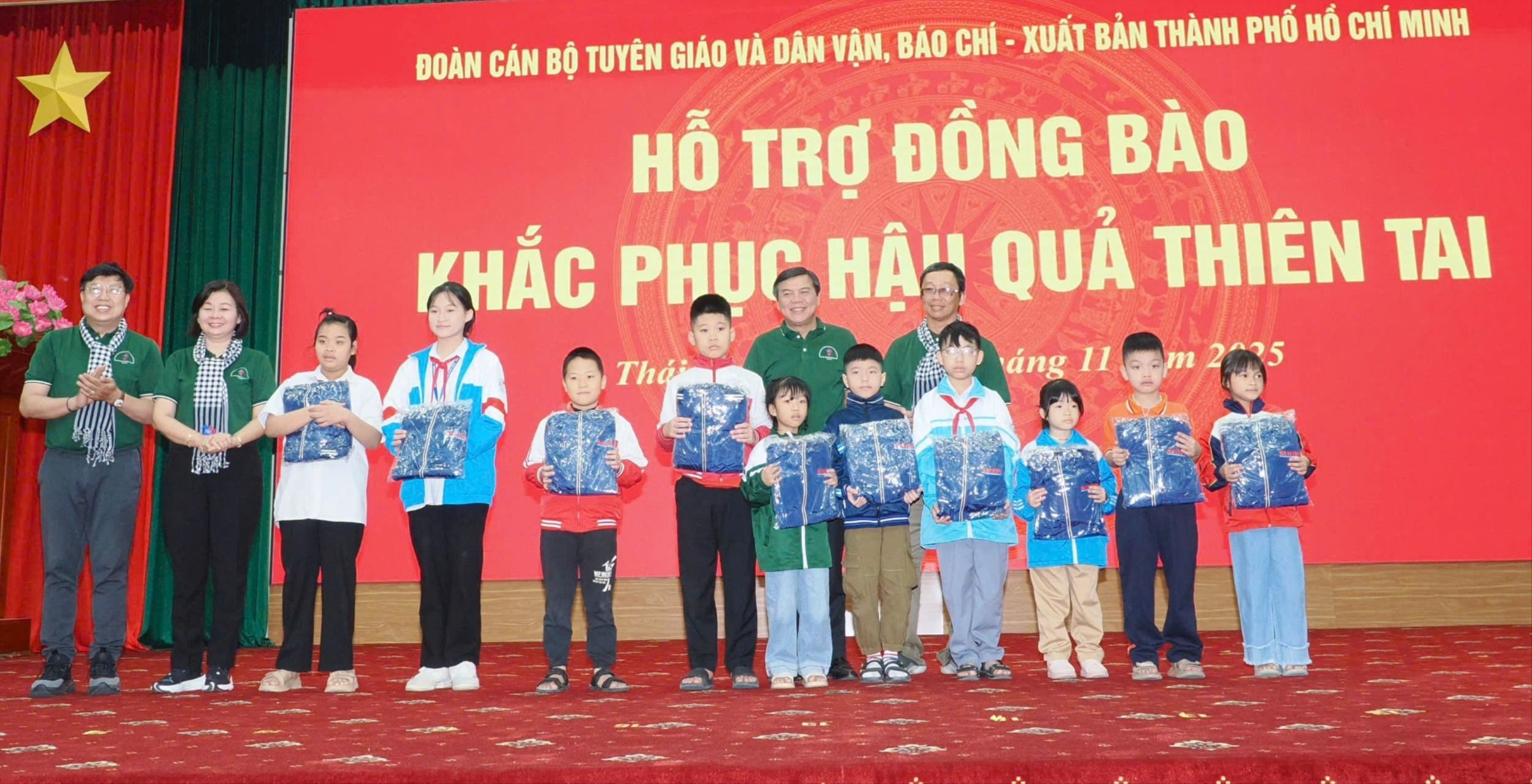 Đồng chí chia sẻ: “Đoàn công tác TPHCM về nguồn đến Thái Nguyên với sự trân trọng và tấm lòng sẻ chia, mong góp phần vơi bớt những khó khăn, mất mát mà bà con phải gánh chịu bởi thiên tai, bão lũ”.