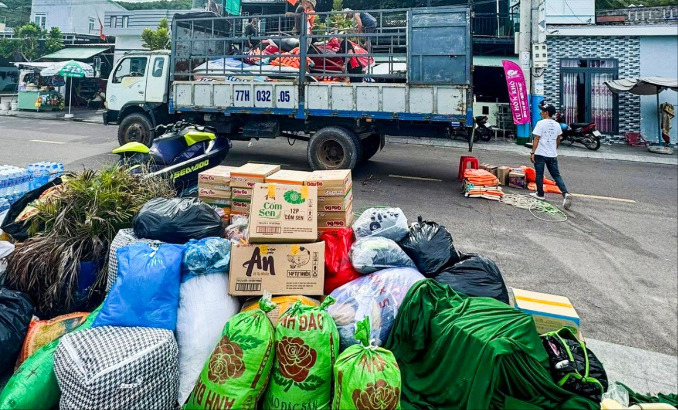 Tại các làng chài ven biển, các nhóm thiện nguyện và người dân tự nguyện chung tay chuẩn bị nhu yếu phẩm, góp phần sẻ chia khó khăn cùng đồng bào vùng lũ .