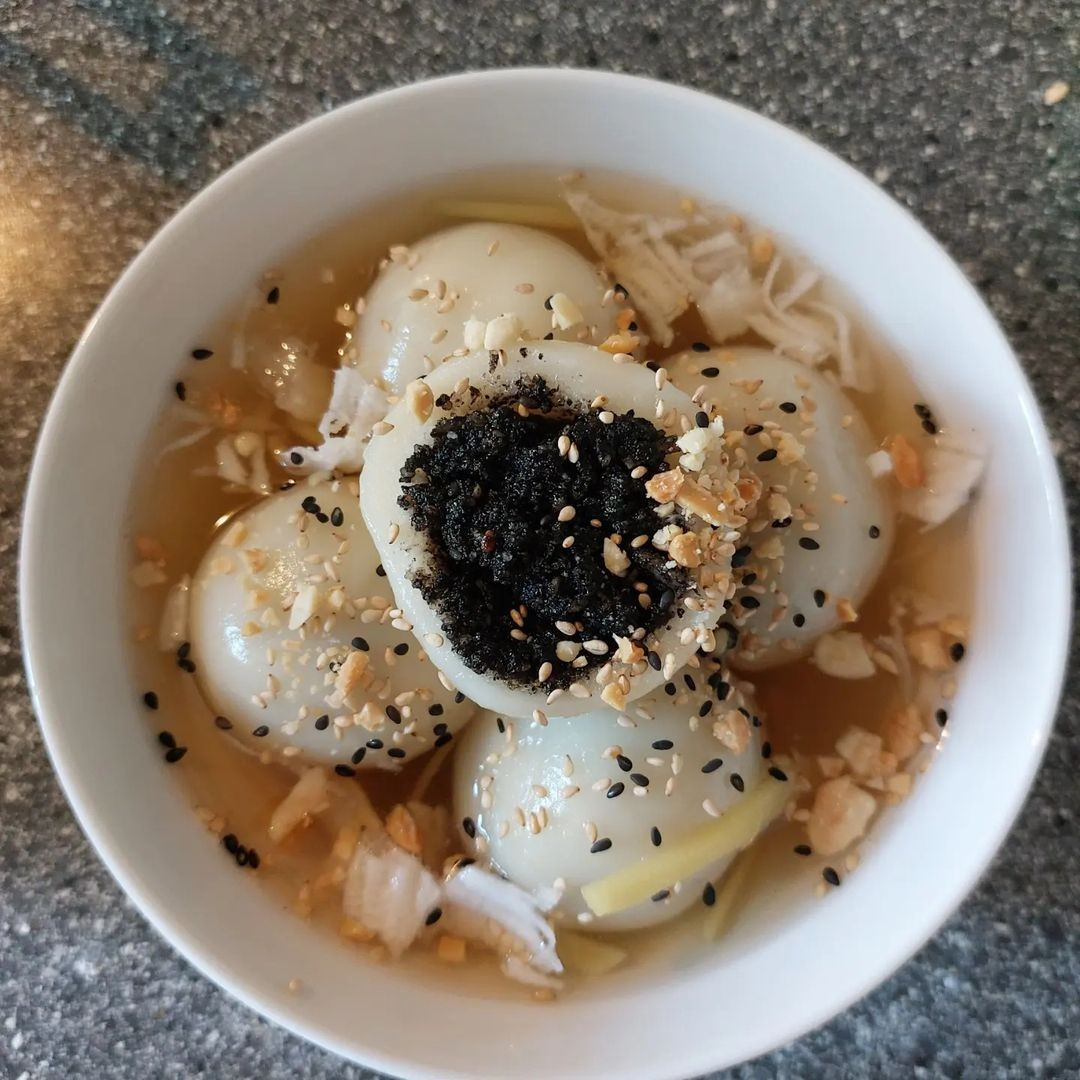 Sủi dìn là phiên bản nhỏ của bánh trôi tàu, nhưng nhân bánh lại khác biệt. Thay vì đậu xanh, nhân sủi dìn gồm vừng đen, lạc rang giã nhỏ và cùi dừa nạo, sên nhẹ tay với mật mía hoặc đường thốt nốt để giữ độ bùi béo vừa phải. Ảnh Traveloka