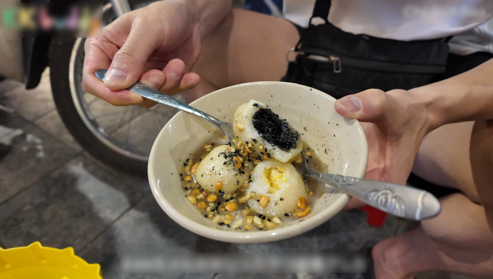 Kana và bạn trai thưởng thức món bánh trôi tàu ở vỉa hè Hà Nội