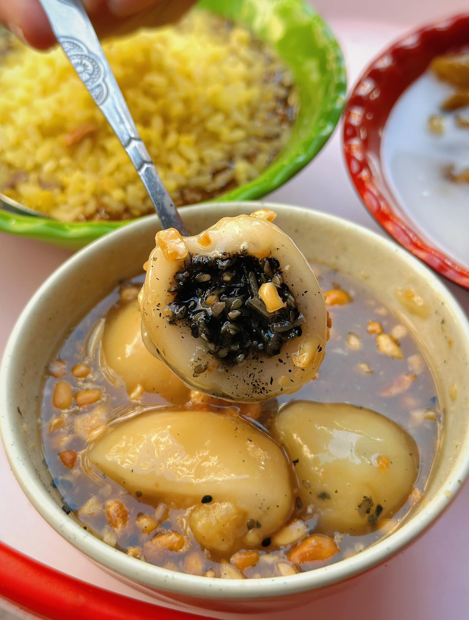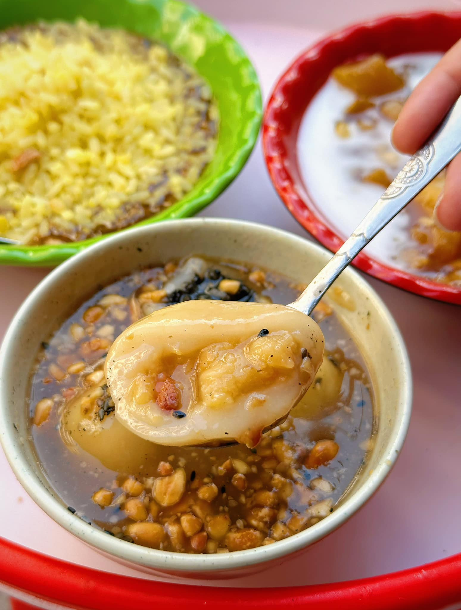 Bánh trôi tàu không phải món ăn để no mà là thức quà cần sự nhẩn nha để thưởng thức. Thực khách xắn nhẹ viên bánh rồi húp thêm thìa nước đường gừng là trọn vị. Ảnh: Hoàng Hiếu