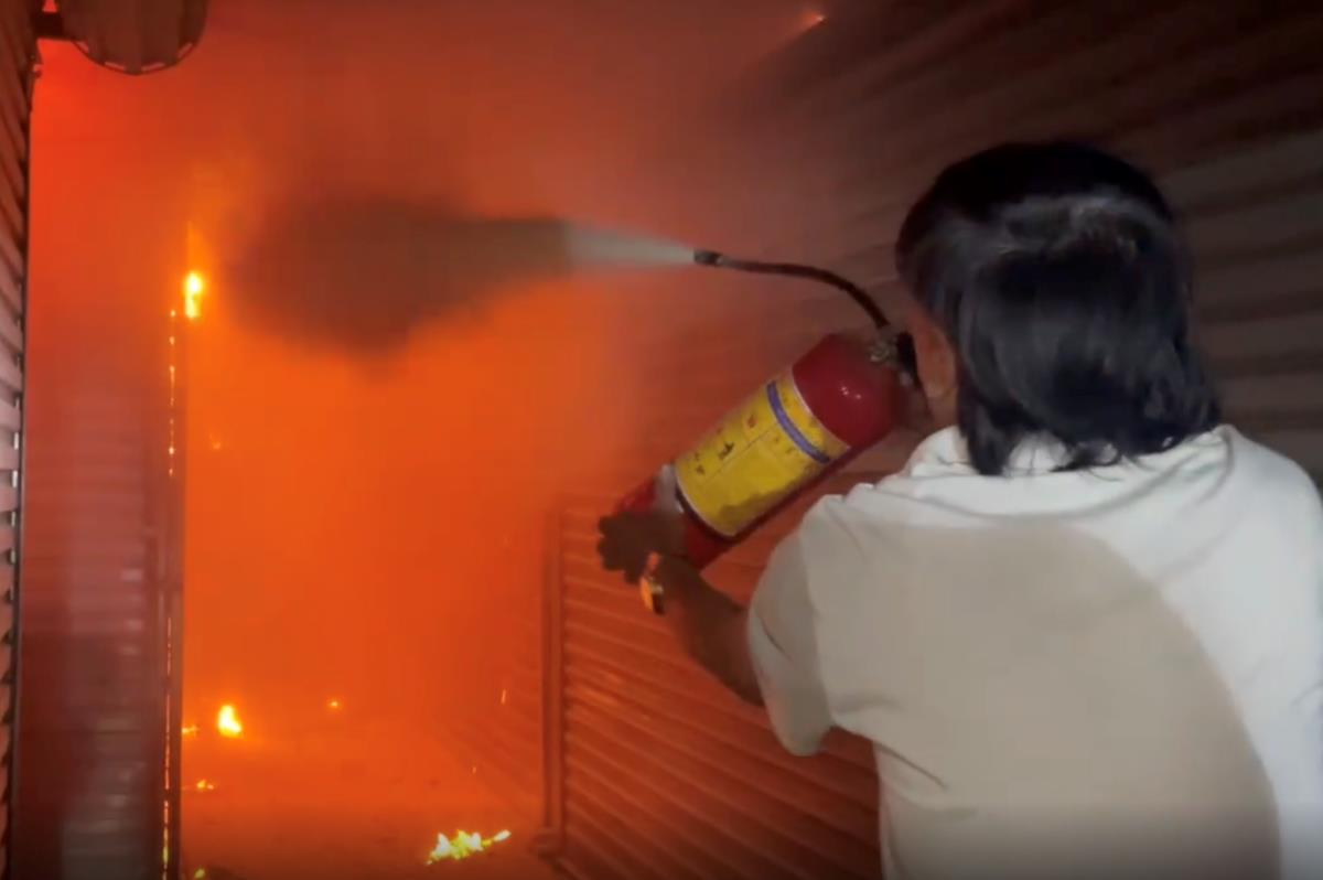 Người dân nỗ lực chữa cháy chợ Bình Hiệp.