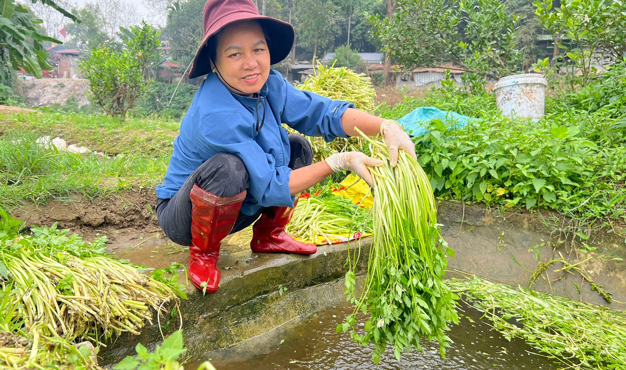 Gia đình bà Sơn có 3 sào ruộng. Vụ đông, bà tập trung cấy rau cần để bán trước và sau Tết. Nhờ chăm sóc kỹ, ruộng rau phát triển đồng đều, thân mập, lá xanh, được thương lái ưa chuộng. Những ngày cận Tết, lượng tiêu thụ khá ổn định, giúp gia đình có thêm nguồn thu.