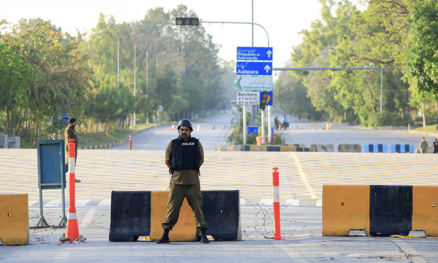Cảnh sát phong tỏa lối vào khu vực dự kiến diễn ra đàm phán lần 2 giữa Mỹ và Iran ở Islamabad (Palistan). Ảnh chụp ngày 21/4/2026 - Ảnh: Reuters