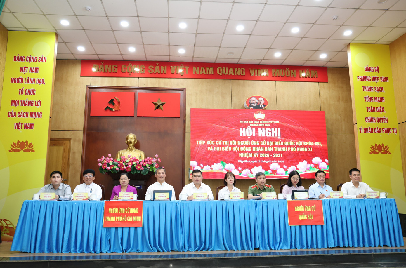 Sáng 12/3, Ủy ban MTTQ Việt Nam phường Hiệp Bình (TPHCM) tổ chức hội nghị tiếp xúc cử tri với người ứng cử đại biểu Quốc hội (ĐBQH) khóa XVI - đơn vị bầu cử số 3 và đại biểu HĐND TPHCM, nhiệm kỳ 2026-2031 với các cử tri trên địa bàn phường.