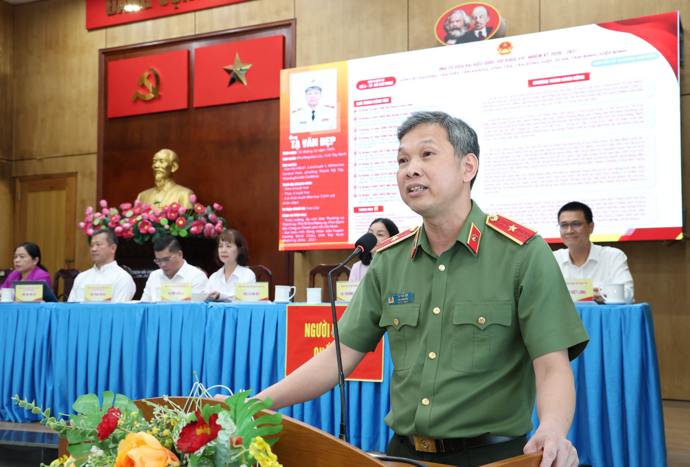 Thiếu tướng Tạ Văn Đẹp trao đổi với cử tri.
