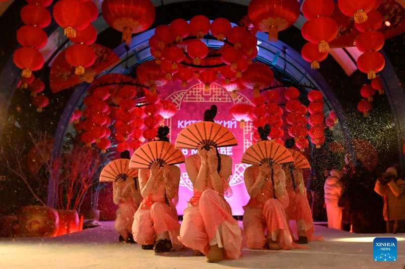 Các nữ diễn viên biểu diễn trong lễ khai mạc các hoạt động mừng Tết Nguyên đán tại Moscow.