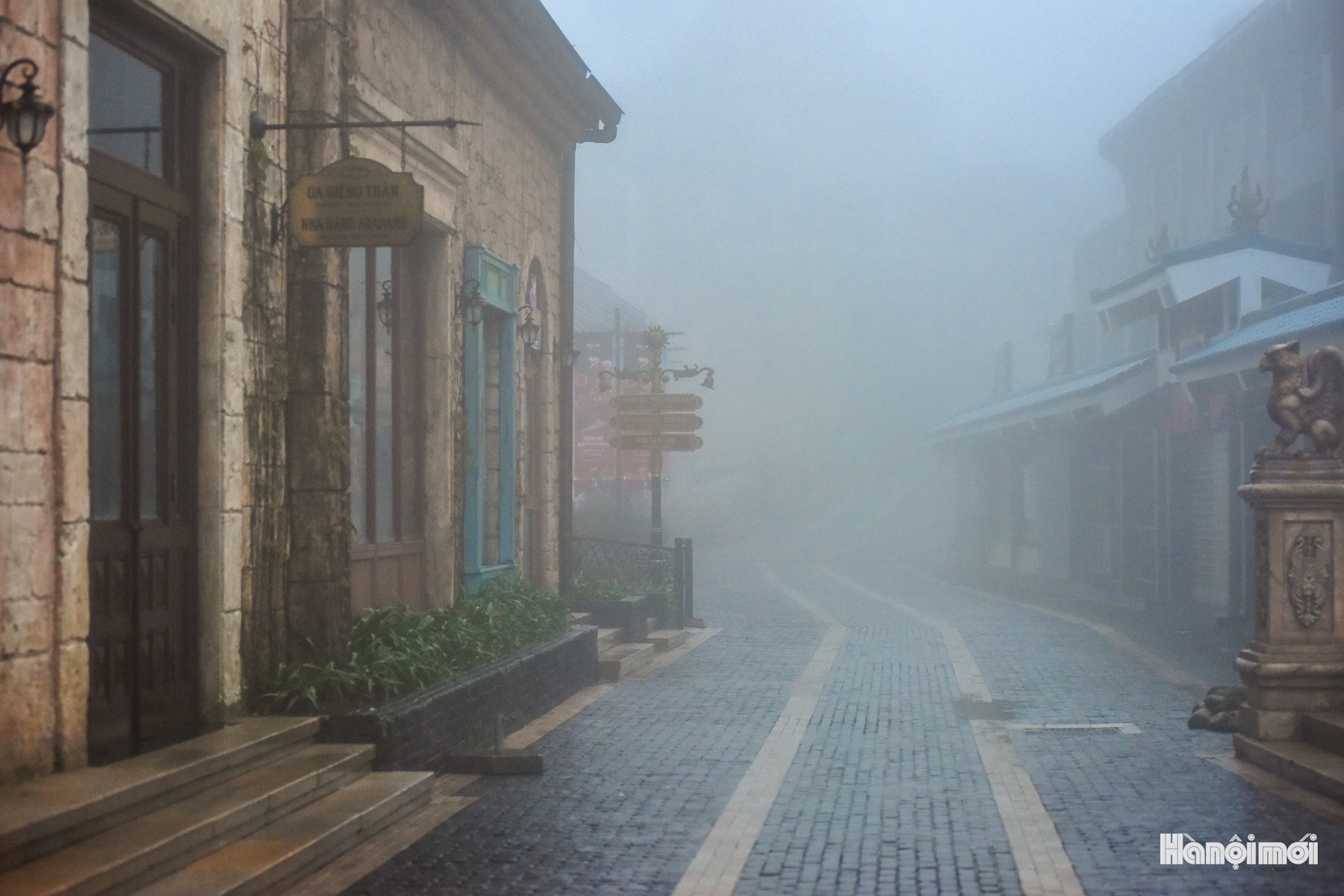 Một góc phố hoàn toàn không bóng người, hình ảnh hiếm gặp tại Bà Nà.
