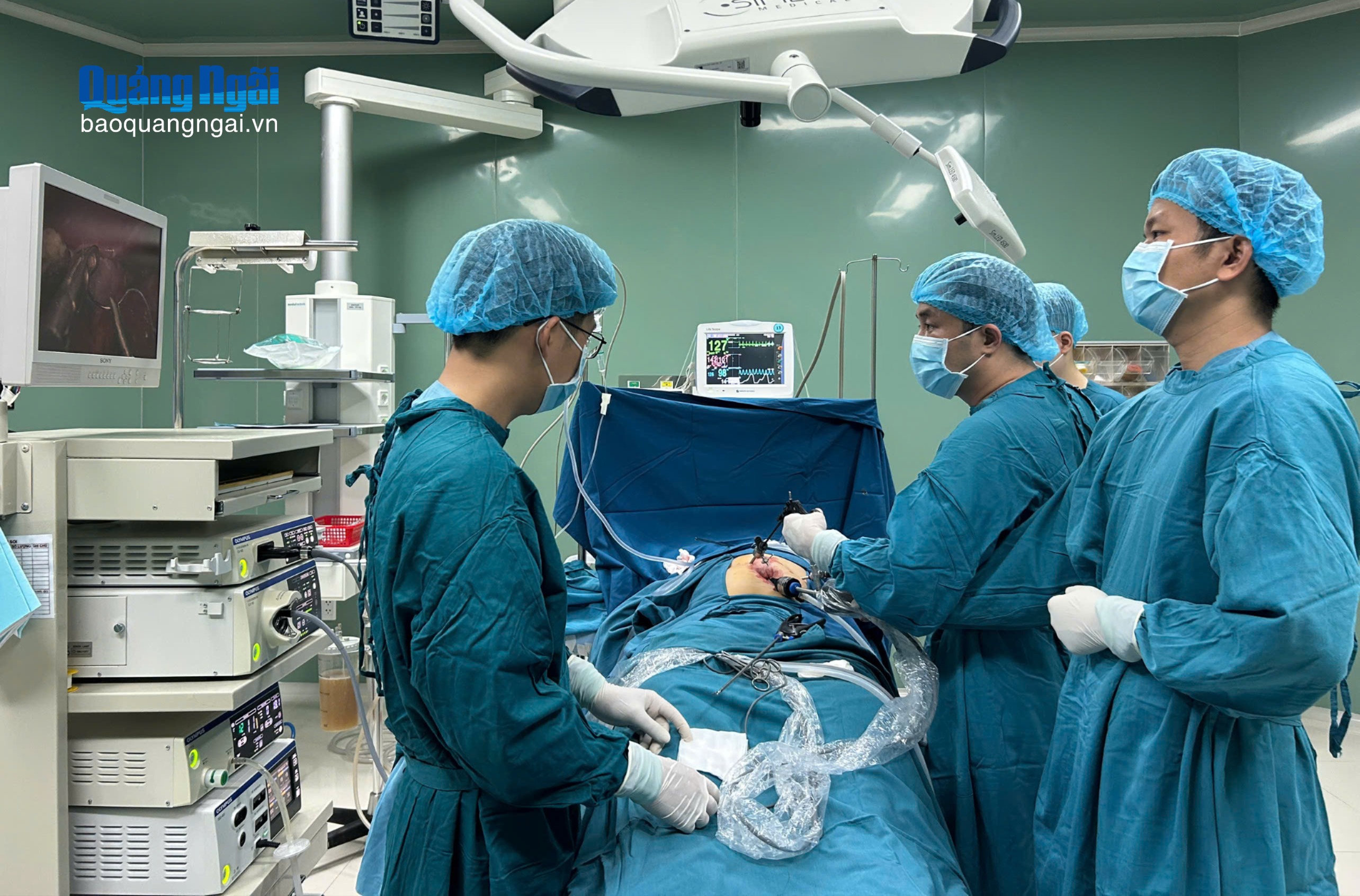 Các bác sĩ Bệnh viện Sản - Nhi tỉnh phẫu thuật nội soi khâu lỗ thủng dạ dày cho bệnh nhi.