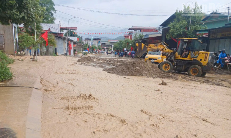 Tại các tuyến Quốc lộ, tỉnh lộ bị ảnh hưởng bởi mưa lũ, tỉnh Sơn La đã huy động máy móc san gạt, khơi thông dòng chảy, bảo đảm cho các phương tiện và người lưu thông an toàn. (Ảnh: SƠN HỒNG)