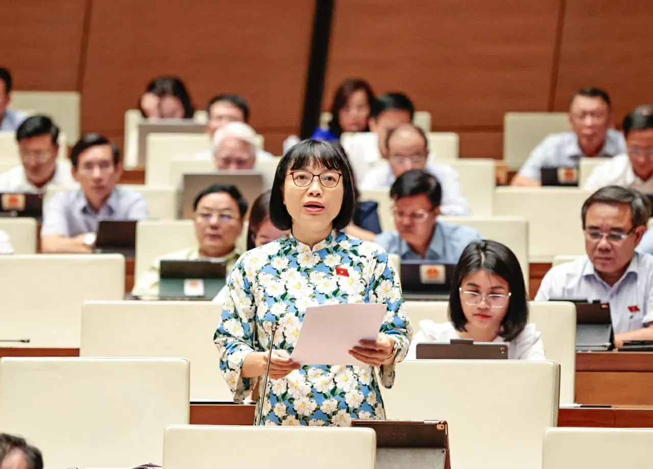 ĐBQH. Nguyễn Thị Việt Nga nhận định, việc chuyển từ chủ trương dùng nhiều bộ SGK về một bộ thống nhất nhằm khắc phục những hạn chế, bất cập. (Nguồn: Quốc hội)
