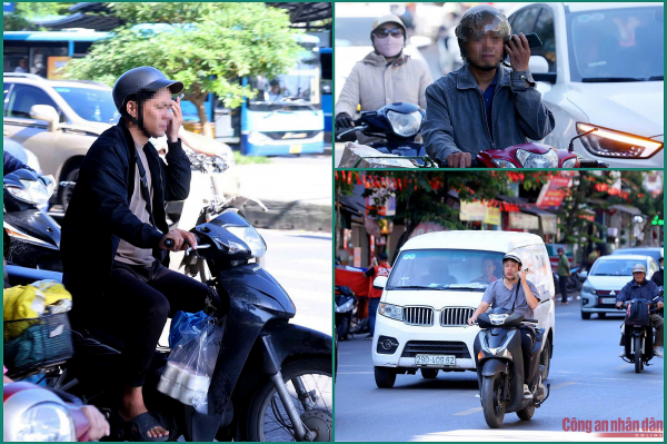 Hình ảnh người dân vừa dùng điện thoại vừa lái xe máy được PV ghi lại.