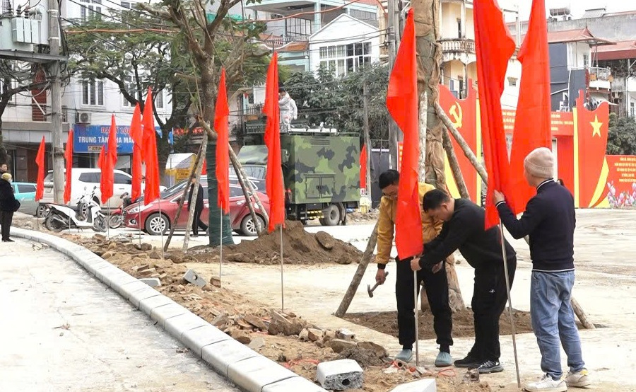 Đồng chí Nguyễn Anh Tuấn, Chủ tịch UBND phường Thục phán cho biết: Với ý nghĩa đặc biệt quan trọng của công trình, vừa đảm bảo tiến độ vừa đảm bảo chất lượng, chúng tôi lựa chọn nhà thầu có năng lực và chỉ đạo thực hiện, huy động tối đa lực lượng, làm ngày làm đêm với tinh thần “3 ca, 4 kíp”. Bên cạnh đó, dựa trên khối lượng công việc hàng ngày, chúng tôi cũng định hướng, huy động các lực lượng tham gia hỗ trợ như: đoàn thanh niên, lực lượng an ninh trật tự cơ sở, đặc biệt là sự chung sức của nhân dân. Đến nay, tiến độ đạt trên 85% kế hoạch, phấn đấu trong 2 - 3 ngày tới, sẽ dồn toàn lực để hoàn thiện một số hạng mục còn lại. Các tuyến đường chính dẫn đến SVĐ như: Bế Văn Đàn, Lý Tự Trọng, Vườn Cam cũng được các tổ dân phố treo cờ Đảng, cờ Tổ quốc rực rỡ, đảm bảo chuỗi sự kiện sắp tới được tổ chức trang trọng, trang nghiêm, tạo khí thế mới trong đời sống nhân dân.