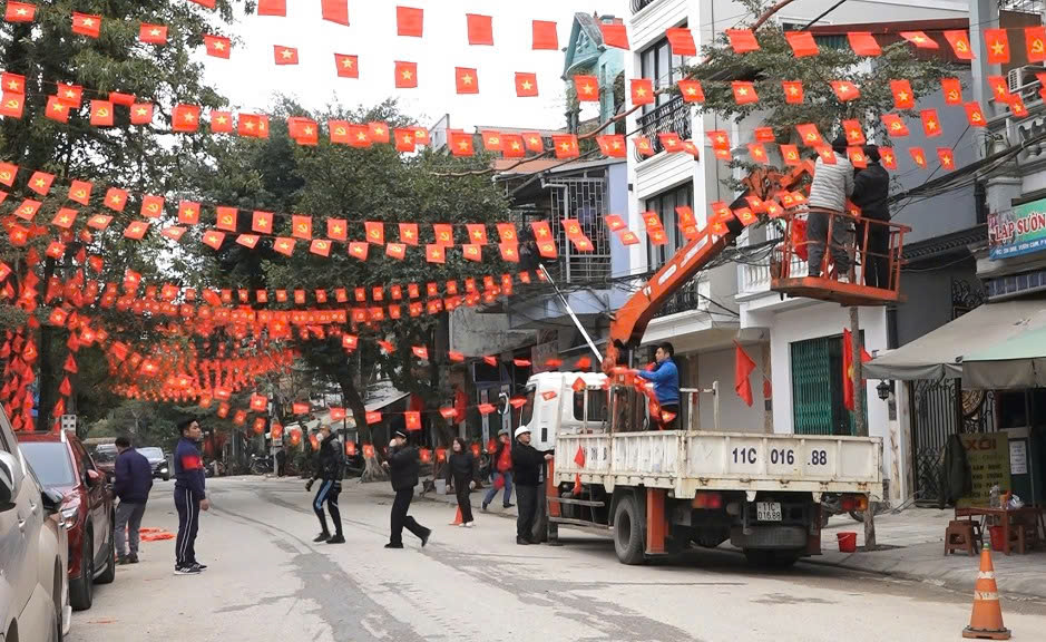 Tổ dân phố Hợp Giang 8, phường Thục Phán treo cờ dọc tuyến đường Vườn Cam.