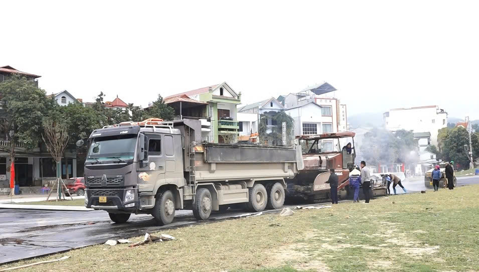 Nhà thầu thi công thảm bê tông nhựa mặt đường trong khuôn viên dự án cải tạo, chỉnh trang khu đất Sân vận động.