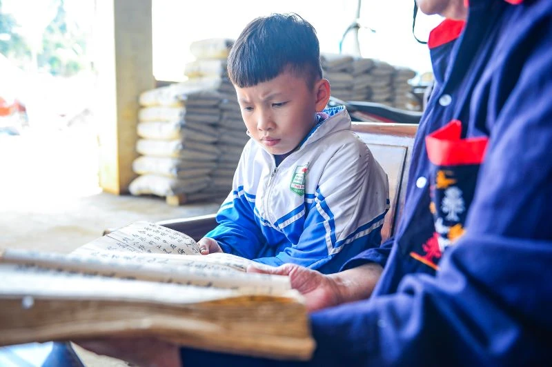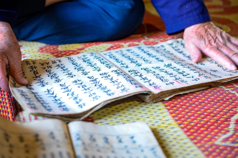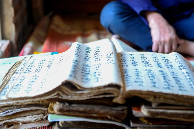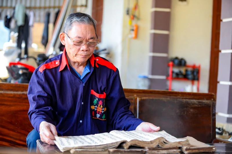 Nói rồi, ông dẫn chúng tôi đi xem kho “gia tài” quý báu mà bao năm qua ông đã dày công tích góp. Những quyển sách đã đen bóng, sờn gáy nhuốm màu thời gian được khâu lại một cách cẩn thận. Hàng trăm loại sách, tư liệu quý bằng chữ Nôm Dao đều có tuổi đời hàng chục đến hàng trăm năm tuổi. Trong đó, có khá nhiều sách cổ từ thời ông nội của ông để lại.