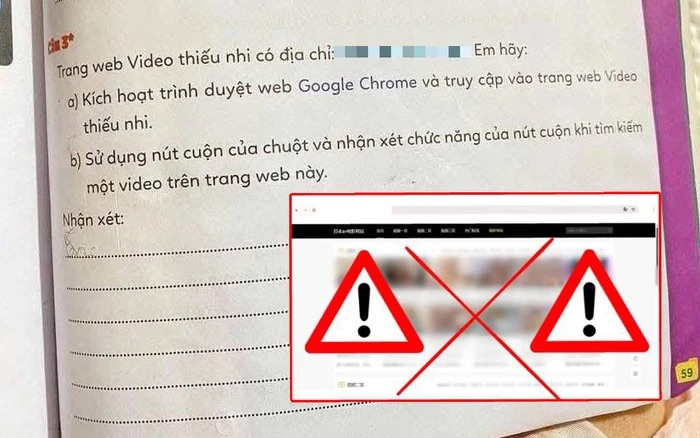 Gần đây, một số phụ huynh đã phản ánh về việc đường link trong vở bài tập Tin học lớp 3 khi truy cập lại chuyển hướng sang một trang web có nội dung không phù hợp với trẻ nhỏ. Sự việc này làm dấy lên lo ngại về độ an toàn của các tài liệu học tập có kèm liên kết Internet.
