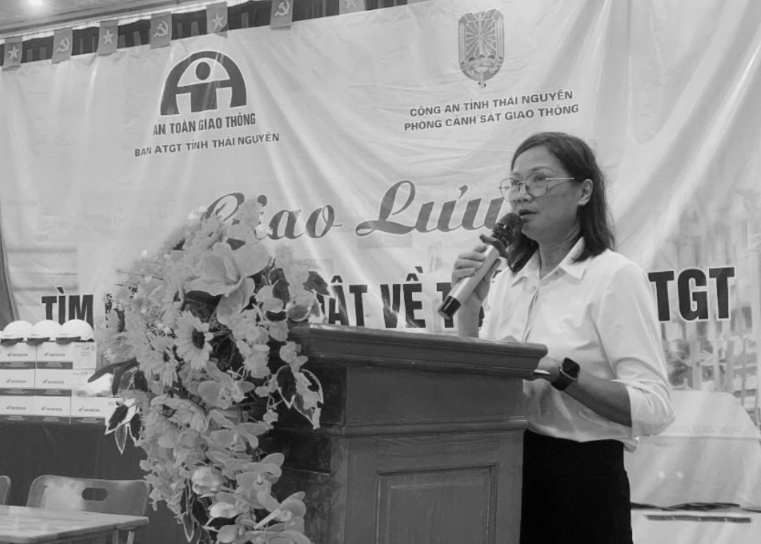 Cô Lý Thị Thanh Xuân phát biểu tại buổi giao lưu chuyên đề về an toàn giao thông hồi cuối tháng 9/2025.