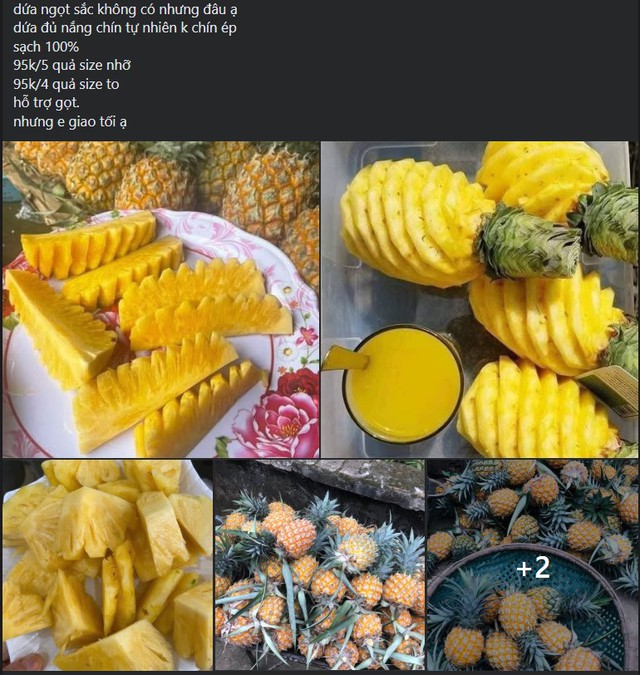 "Đang vào mùa dứa nên trên thị trường bày bán rất nhiều, từ các gánh hàng rong cho đến cửa hàng hoa quả, siêu thị, đâu đâu cũng thấy dứa. Có 2 loại dứa phổ biến đang được người tiêu dùng tiêu thụ thường xuyên là dứa lai và dứa mật. Trong đó, dứa lai thì quả to, cứng, vị nhạt, thơm nhẹ còn dứa mật quả nhỏ hơn nhưng thơm và ngọt đậm hơn. Giá của hai loại dứa này cũng khác nhau, dứa mật sẽ đắt gấp đôi dứa lai.