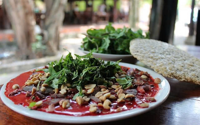 Khi dọn lên, thực khách thường thêm lạc rang, chanh và ăn kèm rau sống, bánh đa hoặc chén rượu nếp - những yếu tố tạo nên hương vị đặc trưng của món nhắm quen thuộc ở nhiều vùng miền.