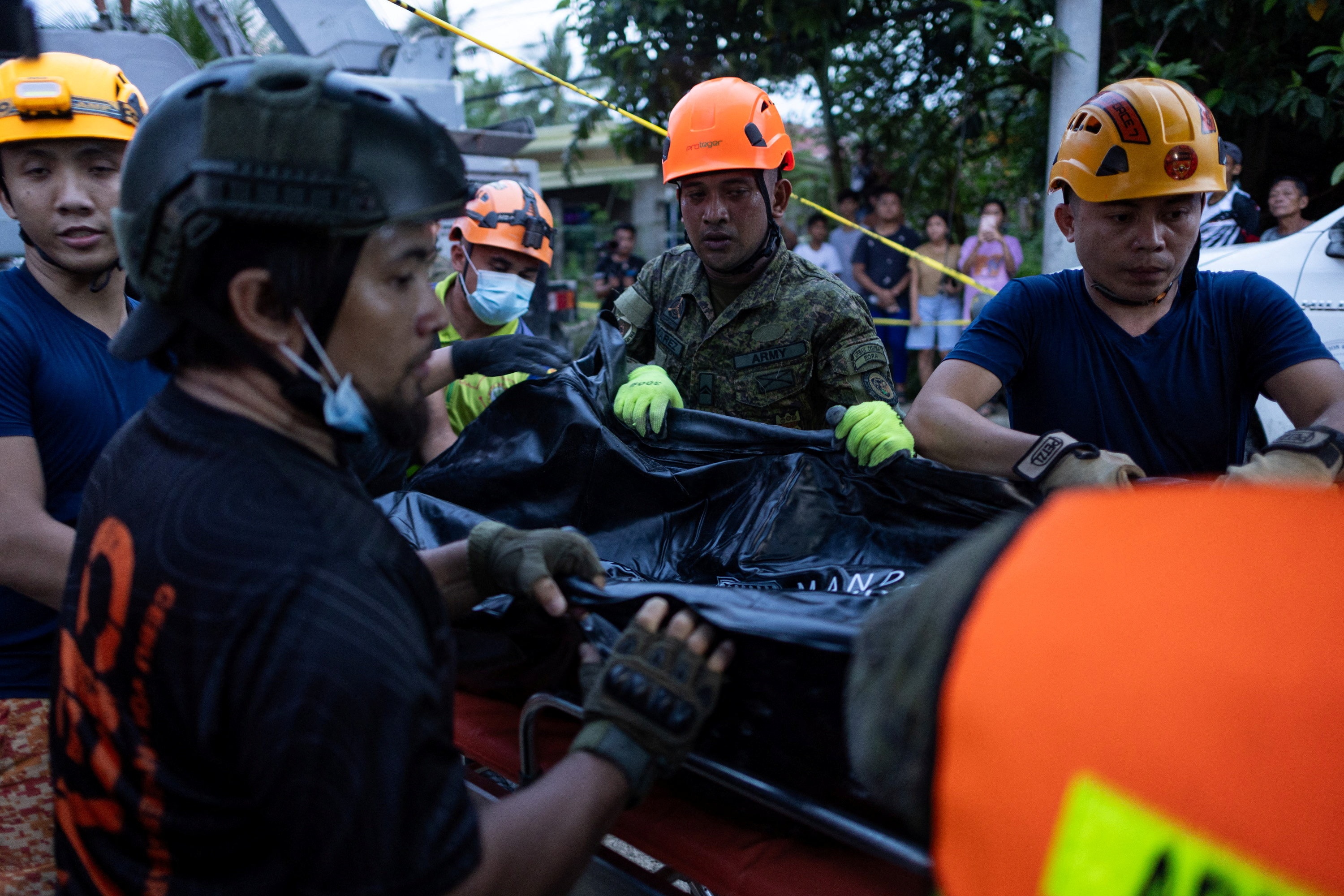 Lực lượng cứu hộ tại Cebu tìm kiếm các nạn nhân mất tích trong trận động đất. Ảnh: Reuters.