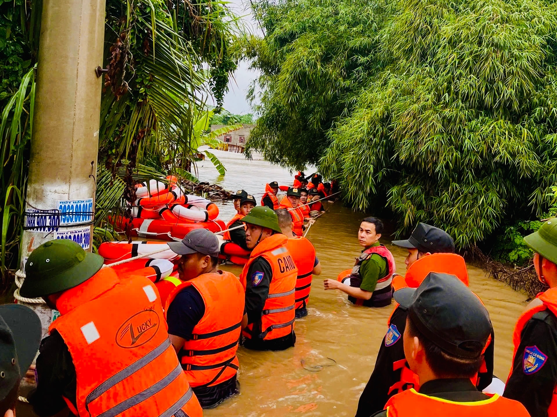 Lực lượng xã Hàm Liêm di dời dân trong đêm
